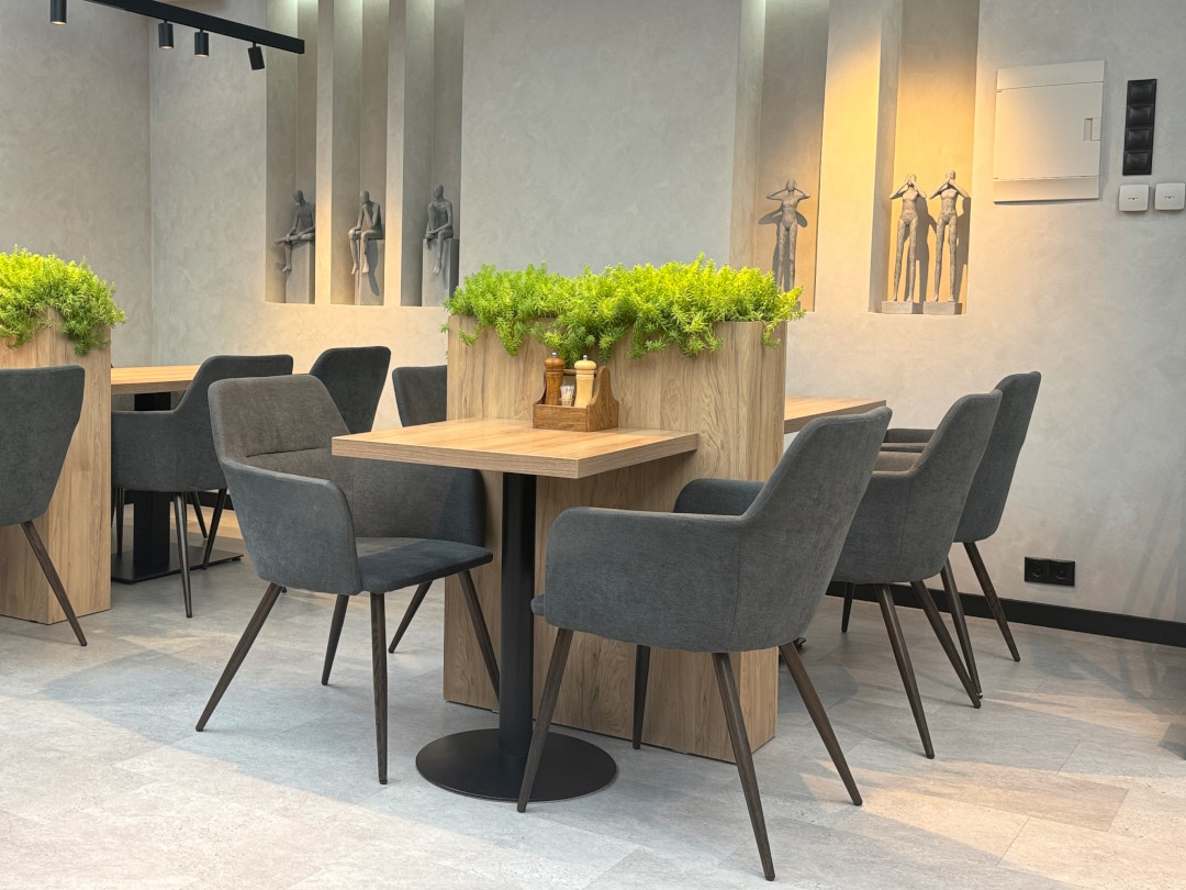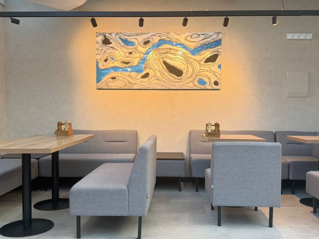 The Rioni restaurant is located on the first floor of apart-hotel Volga and it works around the clock.